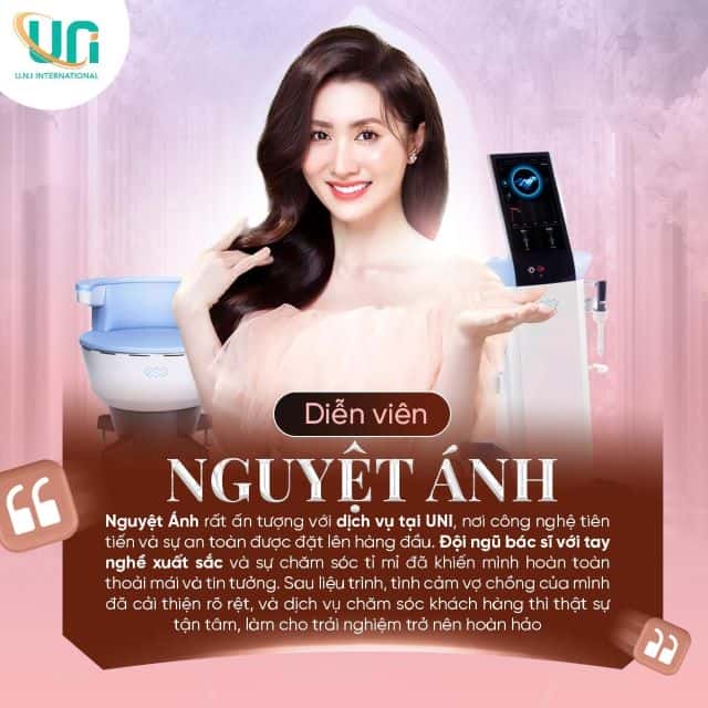 Nguyệt Ánh rất ấn tượng với dịch vụ tại UNI, nơi công nghệ tiên tiến và sự an toàn được đặt lên hàng đầu. Đội ngũ bác sĩ với tay nghề xuất sắc và sự chăm sóc tỉ mỉ đã khiến mình hoàn toàn thoải mái và tin tưởng. Sau liệu trình, tình cảm vợ chồng của mình đã cải thiện rõ rệt, và dịch vụ chăm sóc khách hàng thì thật sự tận tâm, làm cho trải nghiệm trở nên hoàn hảo